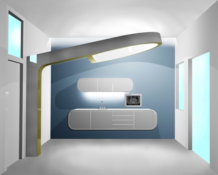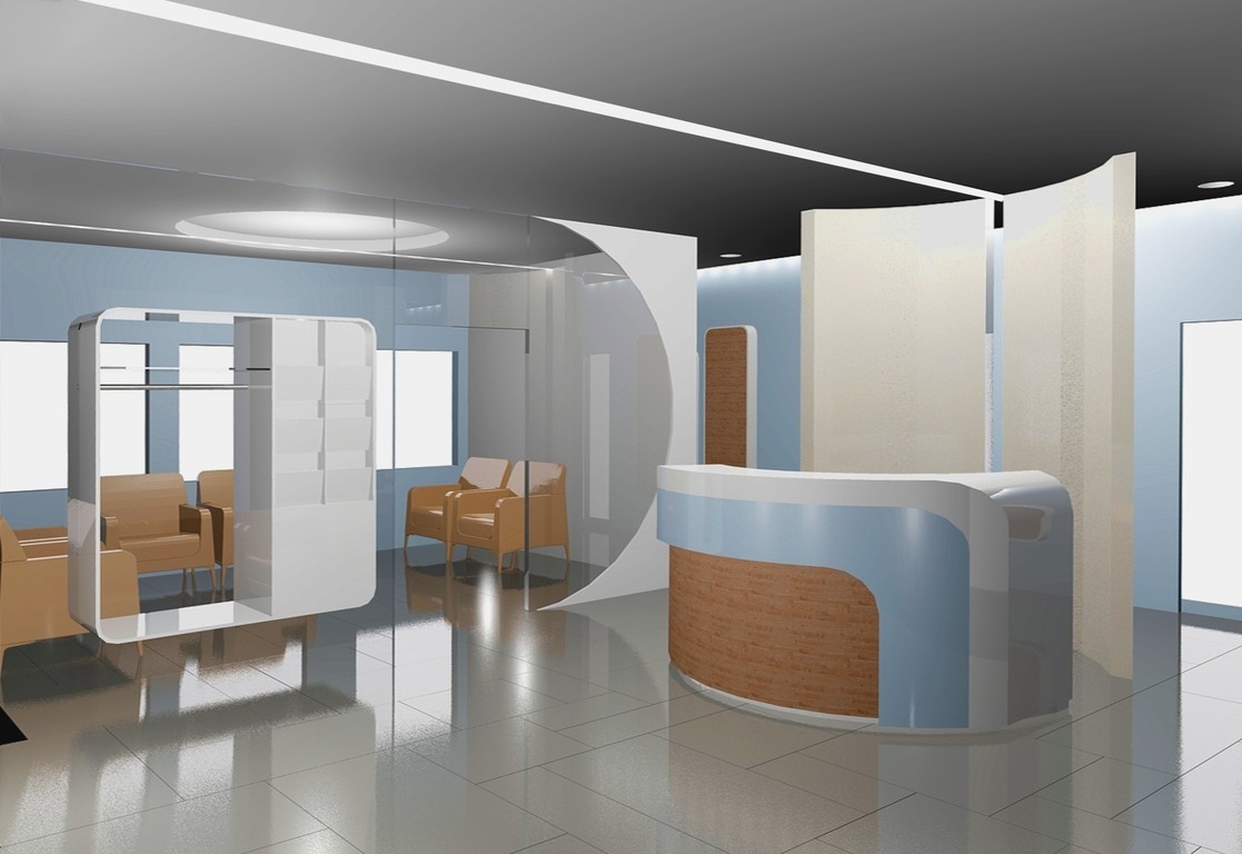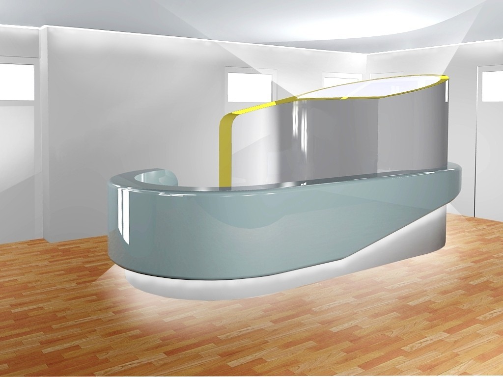 Der Empfangstresen besteht aus Kirschholz, Tisch